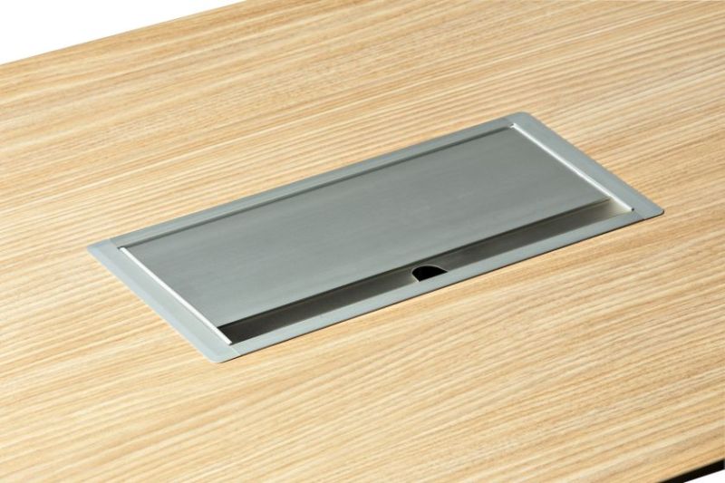 The Horizontal Powerdock makes use of the Optima extrusion by mounting it horizontally within the work surface and giving it the ability to tilt up, exposing the sockets and peripherals to the surface.